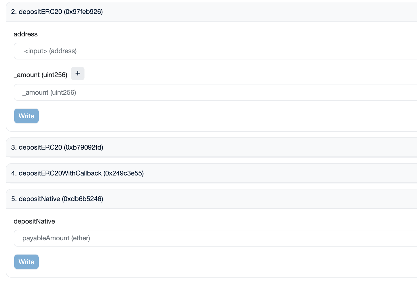 <figure><img src="https://4144525652-files.gitbook.io/~/files/v0/b/gitbook-x-prod.appspot.com/o/spaces%2FYlSi30nrcEOossIDFFua%2Fuploads%2F3z1txegzvQbFAWkYOcHx%2Fimage.png?alt=media&#x26;token=afaf110c-e7b4-4592-9fe8-40937a159971" alt=""><figcaption><p>depositERC20 and depositNative</p></figcaption></figure>